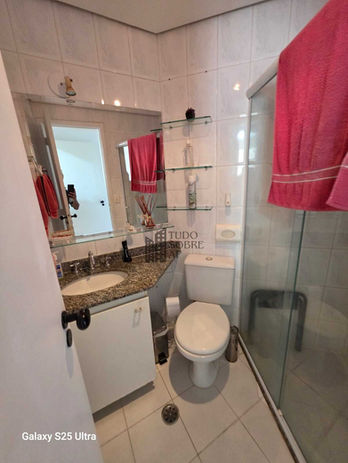 Apartamento equipado com armários planejados nos quartos, piso laminado em todos os ambientes, despensa na cozinha, banheiros com armários, espelhos e box de vidro.