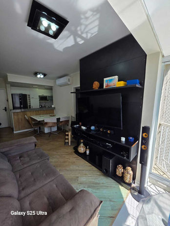 Apartamento disponível para venda, tem 74m², 3 dormitórios, 1 suíte, 2 banheiros, sala com varanda integrada fechada com vidro e também possui 2 vagas de garagem.